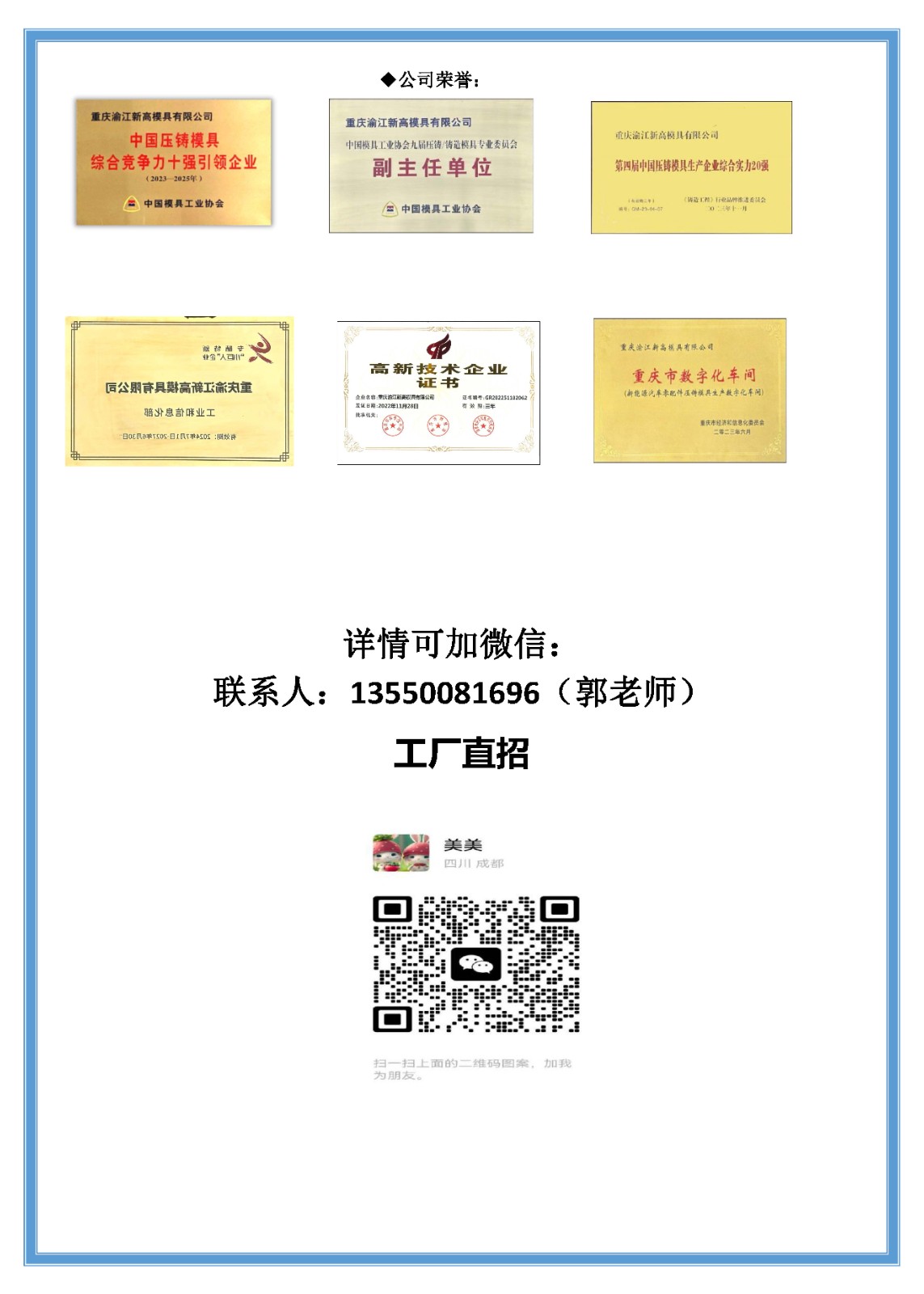 重庆渝江新高模具有限公司招聘