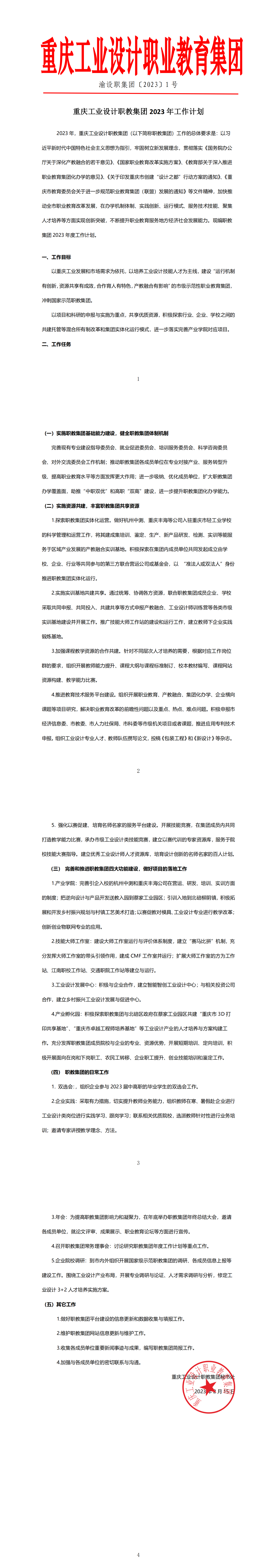 重庆工业设计职教集团 2023 年工作计划